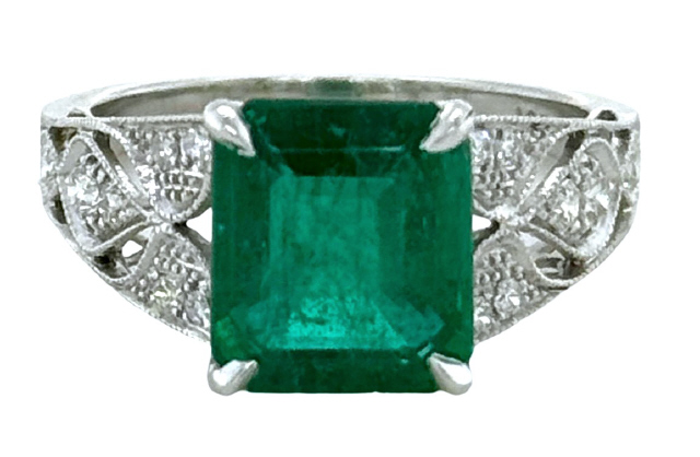 EC Emerald 3.54ct 9.88 x 8.51 x 5.37mm GIA Report#2235161210 Diamonds=24/.31tw H-I VS-SI