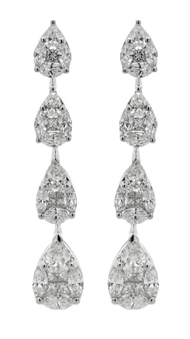 18kt white gold pearshape, marquise and princess cut diamond hanging earrings