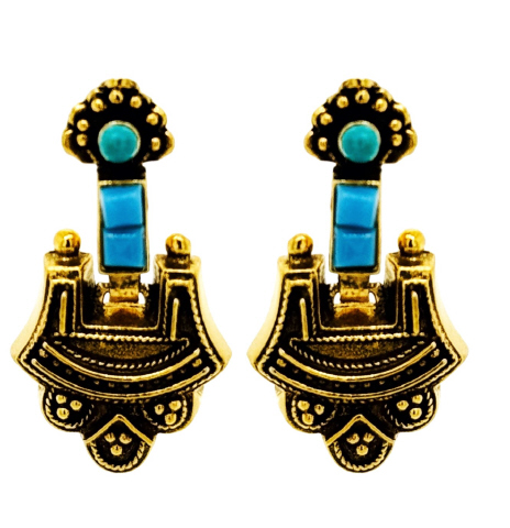 14kt yellow gold turquoise victorian style earrings