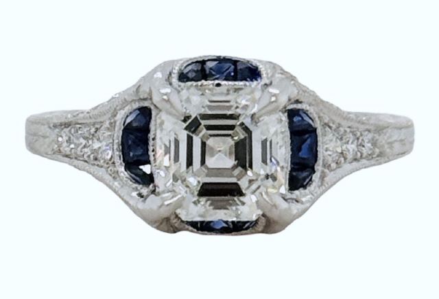 Square emerald cut diamond 1.51cts H SI1 GIA 15322078 6.56x6.28x4.30mm 68.5D 62T VG/VG N Diamonds 22/.38tw E-F VS Sapphires 12/.28tw