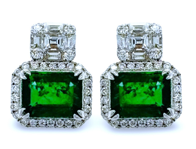 18kt white gold emerald and diamond earrings.