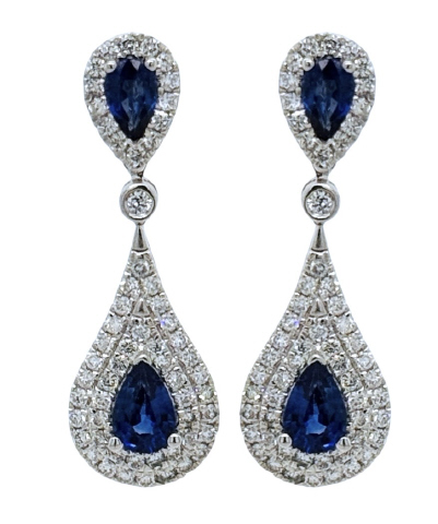 Pear Shape Sapphires 4/1.35tw Round Diamonds 116/.74tw G-H/VS2-SI1 (Measures 1" long)