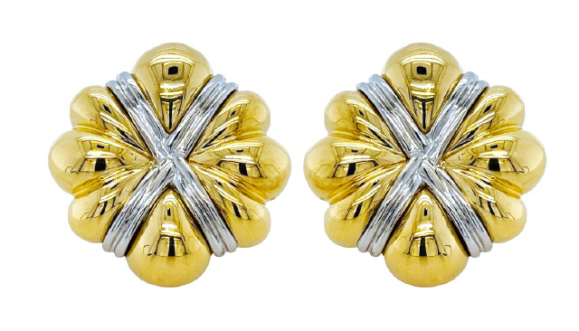 Platinum/18kt yellow gold flower style earrings with post and omega clip backs.
