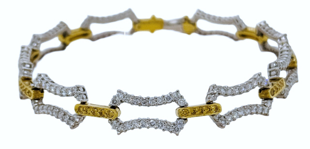 Round White Diamonds 180/2.75tw+/- G-H/VS Round Yellow Diamonds 45/.60tw+/- (Measure 8.8mm wide)