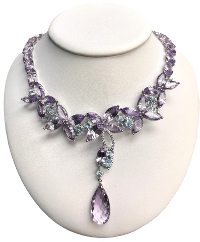 18kt white gold amethyst and blue topaz necklace