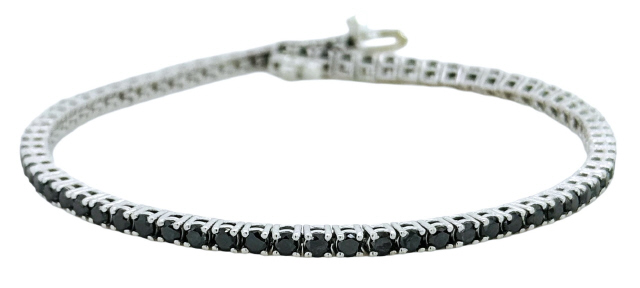 Gents 14kt white gold 4-prong straight line black diamond tennis bracelet. 8"