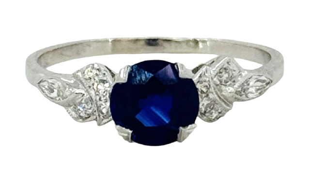 Platinum art deco diamond and sapphire ring