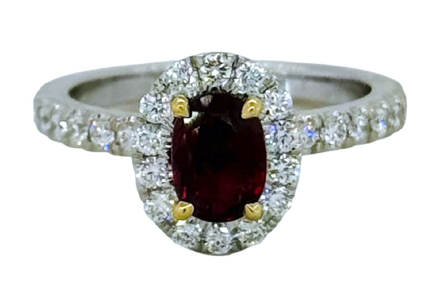Round diamonds 34/0.68tw G-H/VS2-SI1 Oval ruby 1.18ct 7.05x 5.15mm