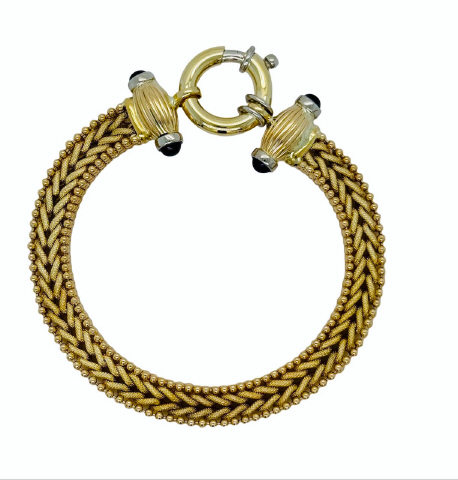 14kt yellow gold braided link bracelet with cab sapphires