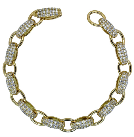 18kt yellow gold pave diamond link bracelet