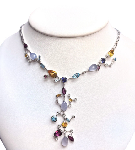 Diamonds 16/0.20tw H-I/SI2-I1 Color stones 25/12.00tw+/- (Iolite, rhodolite garnet, citrine, blue topaz and blue agate)