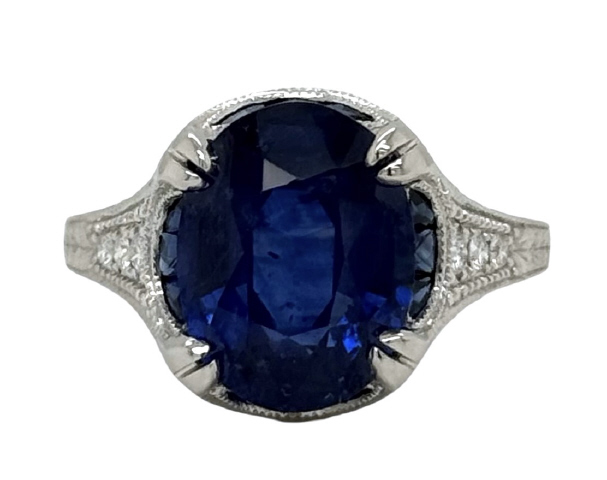 Platinum oval sapphire and diamond ring