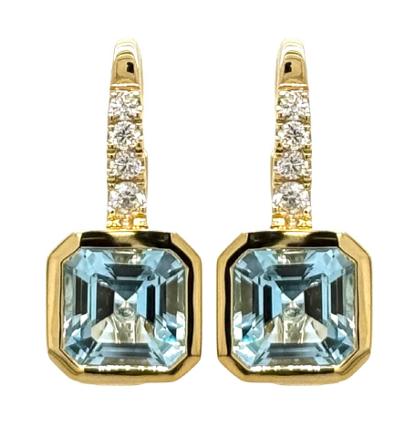 14kt yellow gold bezel set blue topaz and diamond earrings