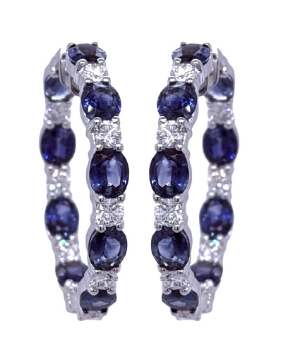18kt white gold oval sapphire and diamond inside outside hoop earrings