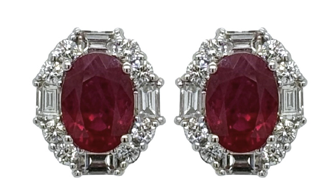 Oval rubies 2/3.20tw Baguette diamonds 8/0.70tw Round diamonds 16/0.36tw G-H/VS2-SI1