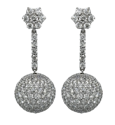 Platinum hanging diamond ball earrings