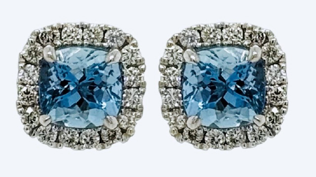 14kt white gold aqua and diamond halo earrings