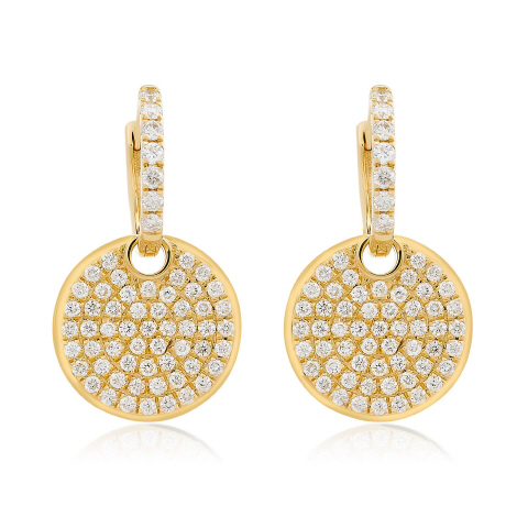 14kt yellow gold mini diamond hoops with removeable pave diamond disc charm.