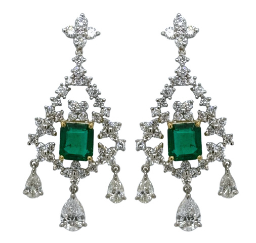 Square Emeralds 2/3.00tw Pearshape diamonds 6/2.50tw+/- G-H/SI1+VS2 Round diamonds 90/2.50tw