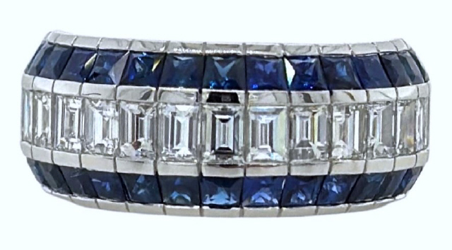 Carre Cut Sapphires 30/2.65tw Baguette Diamonds 15/1.92tw G-H/VS2-SI1