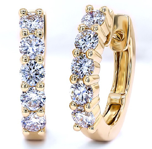 14kt yellow gold 5 diamond huggie earrings