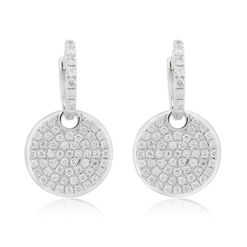 14kt white gold mini diamond hoops with removeable pave diamond disc charm.