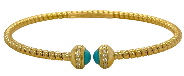 18kt yellow gold tubogas flex bangle with turquoise and diamonds
