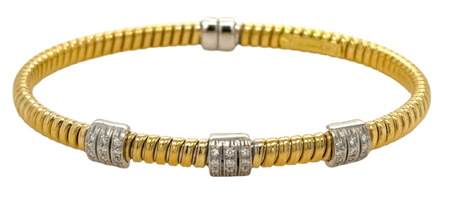 18kt two-tone tubogas diamond section bangle