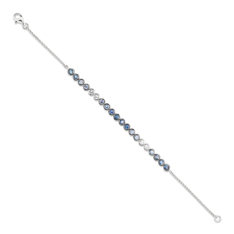 14kt white gold bezel set ombre blue sapphire and chain bracelet.
