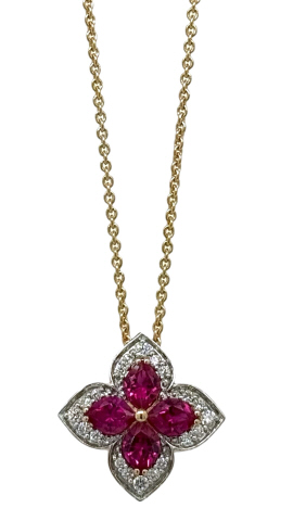 18kt rose gold ruby and diamond pendant with chain