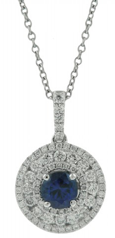 18kt white gold sapphire and diamond pendant with chain.