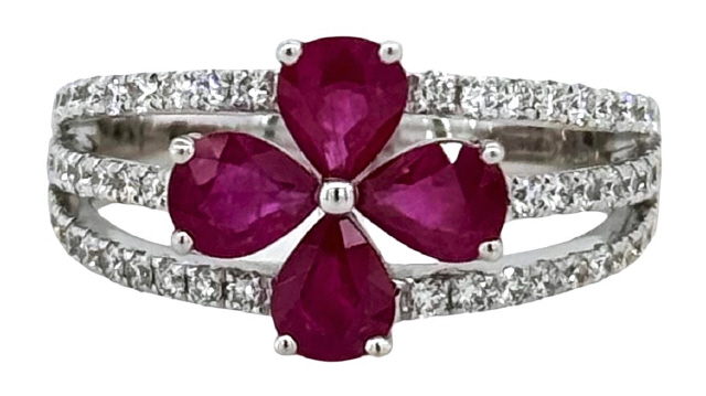 18kt white gold pearshape ruby and diamond ring