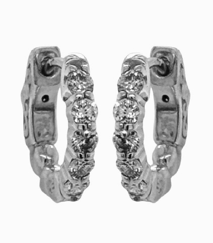 14kt white gold shared prong diamond huggie earrings