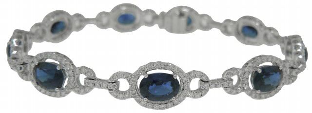 18kt white gold oval sapphire and diamond bracelet