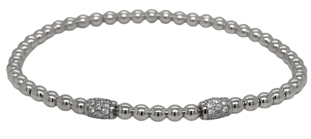 18kt white gold beaded stretch bracelet with (2) diamond elements.