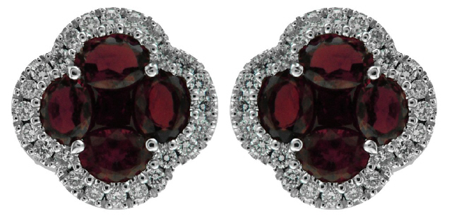 18kt white gold ruby and diamond clover style earrings.