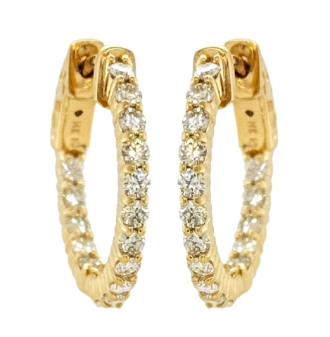 14kt yellow gold inside outside diamond hoop earrings