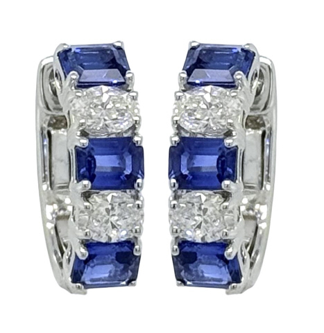 18kt white gold sapphire and diamond huggie hoop earrings.