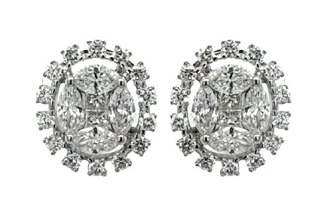 Marquise Diamonds 8/.28tw G-H/VS2-SI1 Princess Cut Diamonds 4/.08tw G-H/VS2-SI1 Round Diamonds 28/.24tw G-H/VS2-SI1 (Measures 10.05 x 8.85mm)