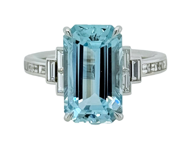 Emerald Cut Aqua 5.19ct Straight Baguette Diamonds 6/.48tw, 8/.26tw G-H/VS2-SI1