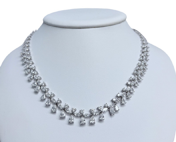 18kt white gold round, marquise and pearshape diamond necklace