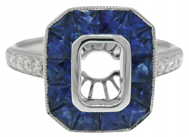 18kt white gold french cut sapphire and diamond semi-mount