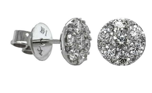 14kt white gold round cluster diamond stud earrings.