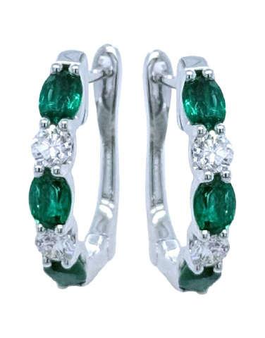 Round Diamonds 4/.35tw G-H/SI1-2 Oval Emeralds 6/.94tw (Measures 16.8mm)