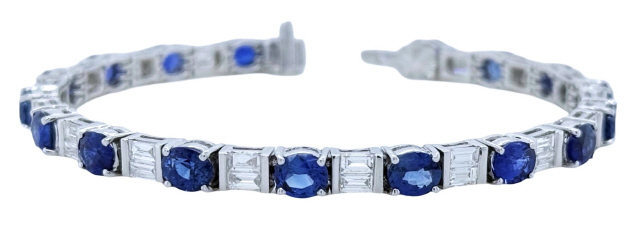 Oval sapphire 17/9.92tw Baguette diamonds 34/2.61tw G-H/VS2-SI1