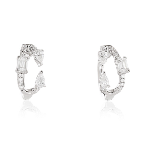 18kt white gold round, pear shape and emerald cut 2 row huggie earrings.