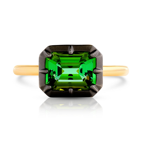 18kt yellow gold green tourmaline ring with satin finish black rhodium.