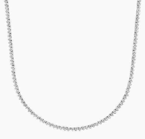 Lab Grown: 14kt white gold 3-prong straight line lab grown diamond tennis necklace. 16.25"