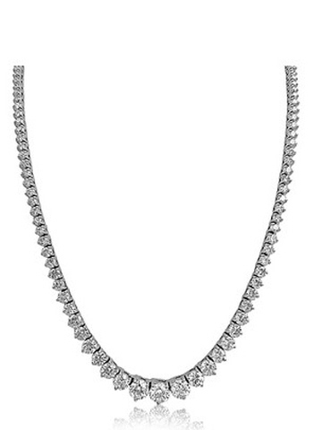 Lab Grown: 14kt white gold 3-prong graduated lab grown diamond tennis necklace. 16.25"