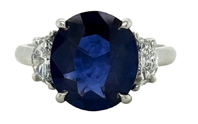 Oval sapphire 4.74ct GIA #1232531214 11.77 x 10.30 x4.61mm Half moons 2/0.51tw G-H/VS Size 6.5